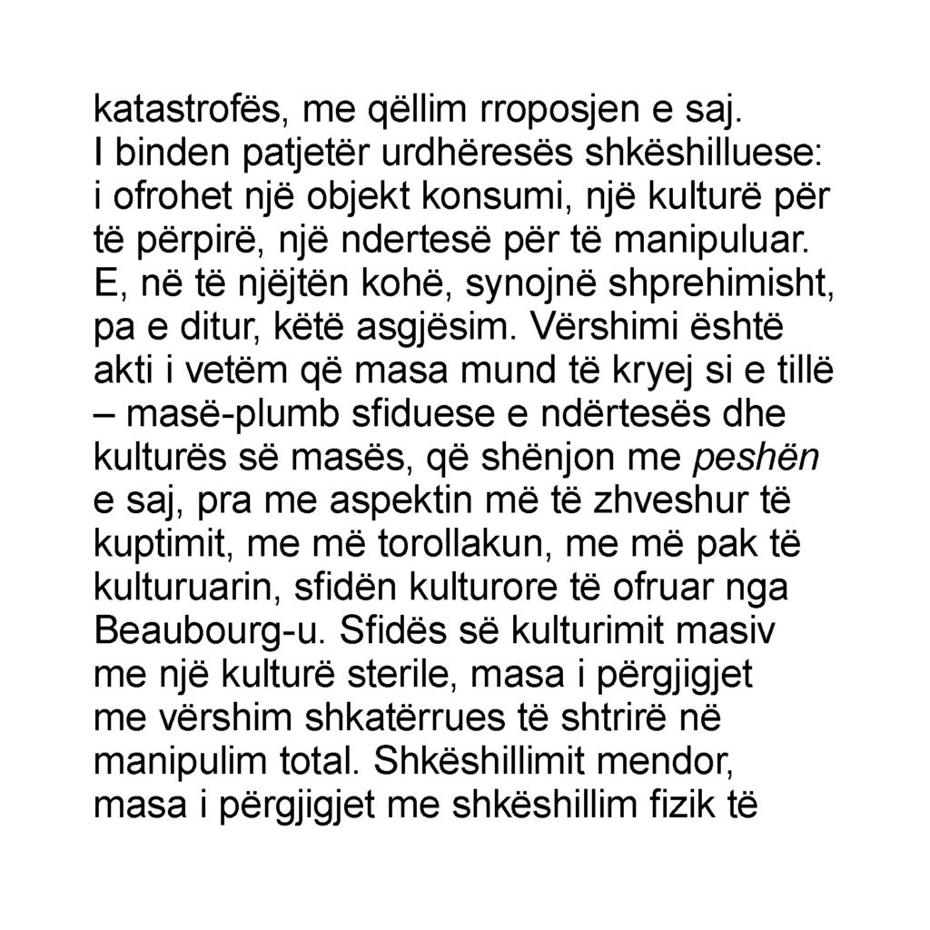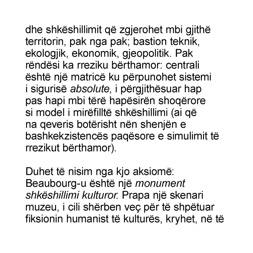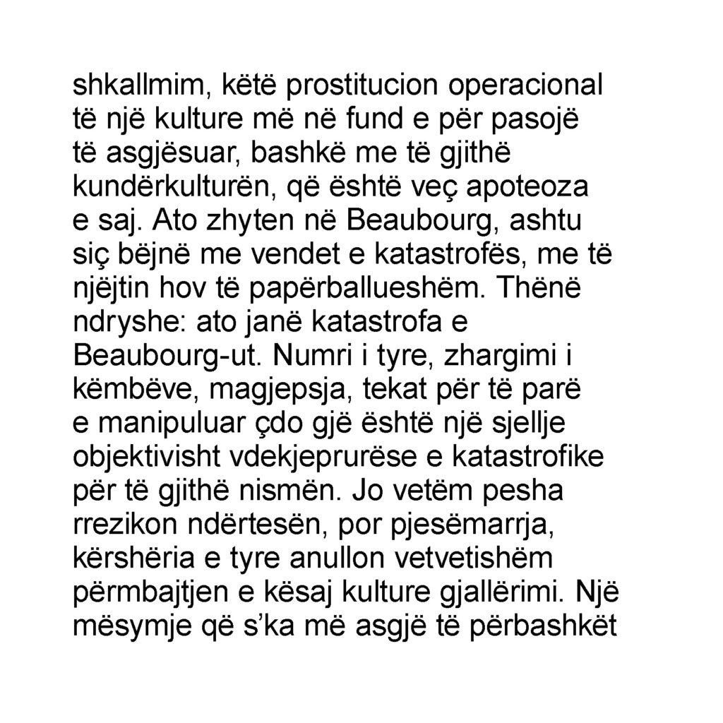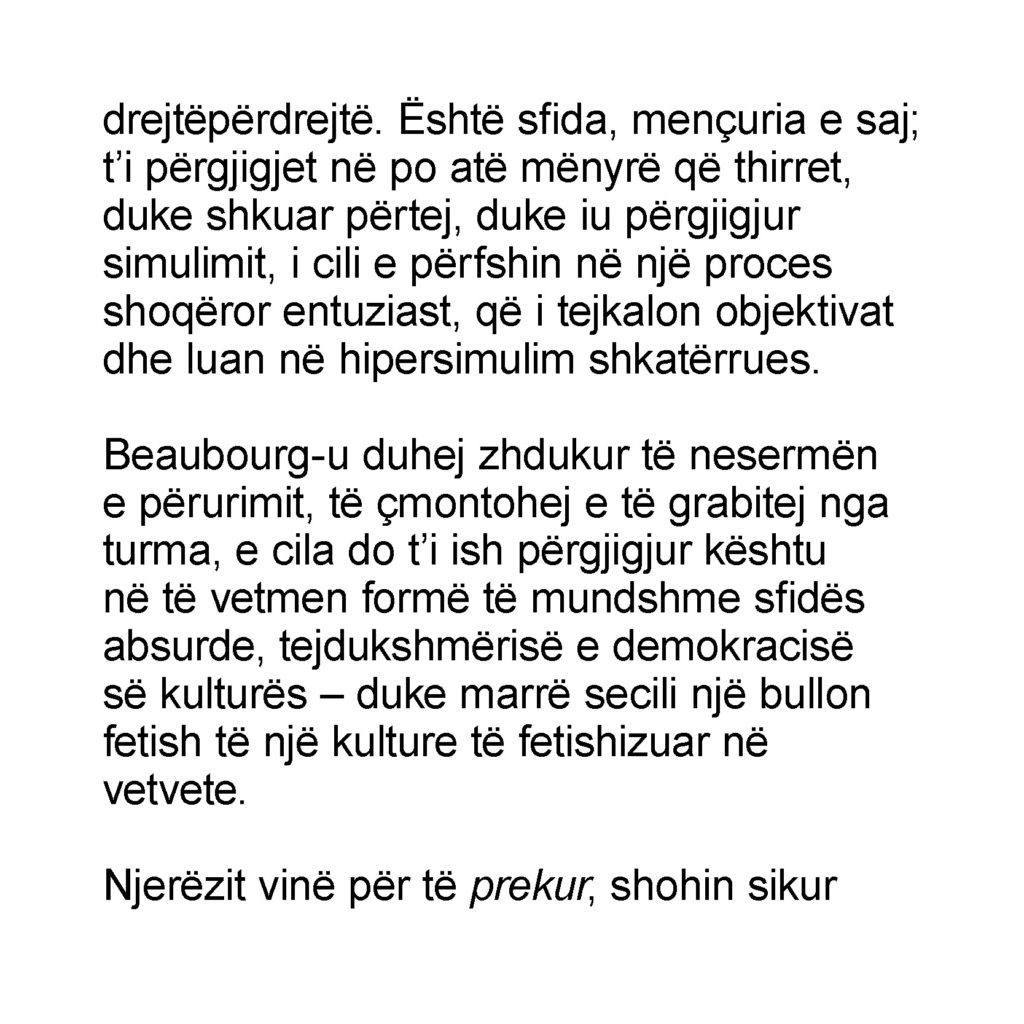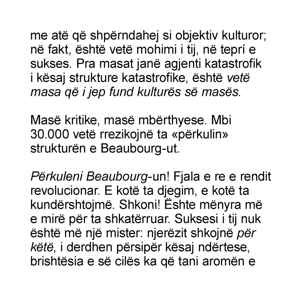 The Albanian translation of Jean Baudrillard’s L’effet Beaubourg has been supported by the French Embassy in Tirana.