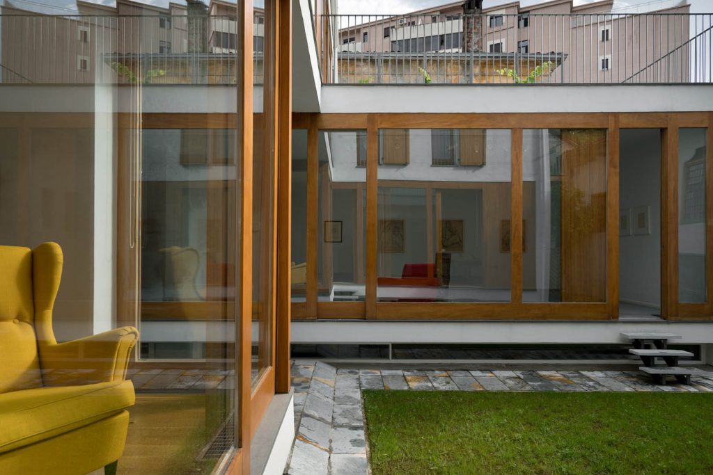 The historic city center of Scutari, a small city 50 km from the Adriatic coast, the cradle of Albanian culture and the so-called “Florence of the Balkans,” has been subject large-scale real-estate speculation, which has indiscriminately demolished traditional architecture in favor of anonymous and commercial towered buildings. In this area, an artist wishes to reconstruct his atelier and home on a centuries-old land, without losing the spirit and function of the original house and with respect for the area’s traditional architectural cannons. The challenge is that of creating a new building which responds to the contemporary needs of the client and his family, one that inserts itself seamlessly between the new and old buildings and offers refuge from the indiscreet and cumbersome modern towers that surround it. The adopted solution is a two-floored horseshoe-shaped building. South-facing, the construction affords pleasant views on to the confining historic building and maximum exposure of the interiors through the alternation of negative and positive generated by the terraces. The balconies that surround a small interior garden offer privacy and continuity with the interior environment.